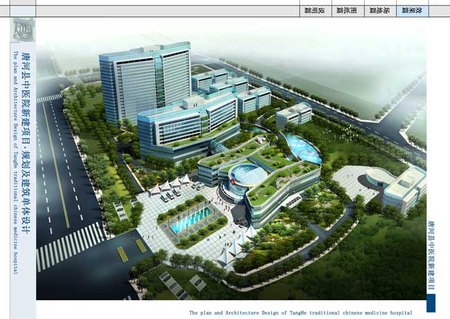 在建筑总体布局和造型上充分体现珍爱生命,以病人为中心的主体形象,形成唐河县中医院独特的文化氛围,满足居民健康服务需求,在规划理念方面,引入创新思维,着重在以下几方面形成突破。建筑与环境设计,应有利于患者生理、心理健康、体现清新、典雅、朴素的行业特点,与医学院建筑风格协调一致,同时又具备自己的特色。
