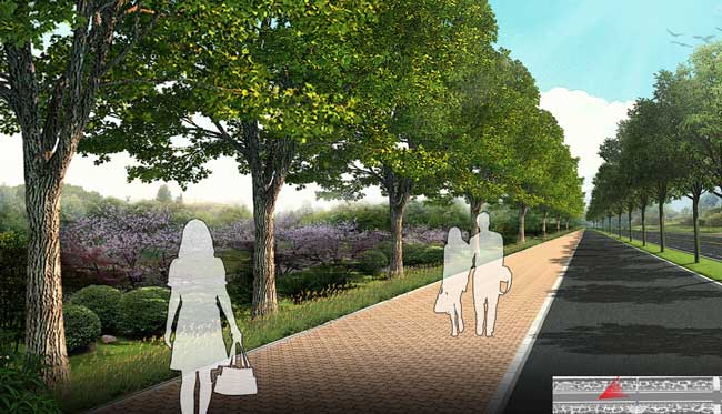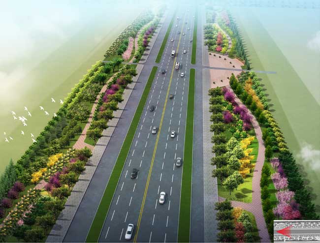 项目简介:该道路具有省道的功能,在承载产业集聚区城市道路功能的同时,还承载了区域的物流通道的功能。设计体现生态共融原则、畅通安全原则、协调统一原则、经济节约原则,使之成为防尘降噪、自然过渡、生态屏障的生态廊道;活力运动、绿色出行、健康游憩的慢行绿廊;出入市口、新城气息、绿意盎然的形象展示;超大绿化、春花秋实、夏荫冬青的景观美化。